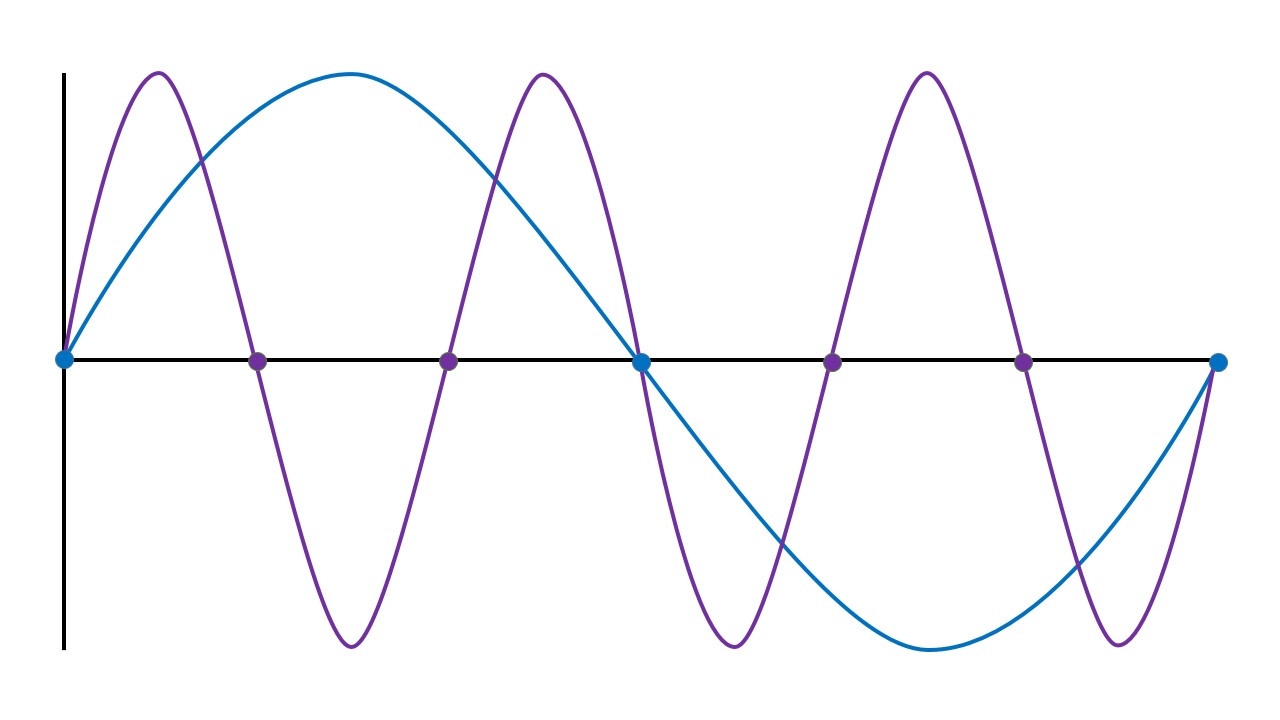The fundamental and a pitch at three times the frequency