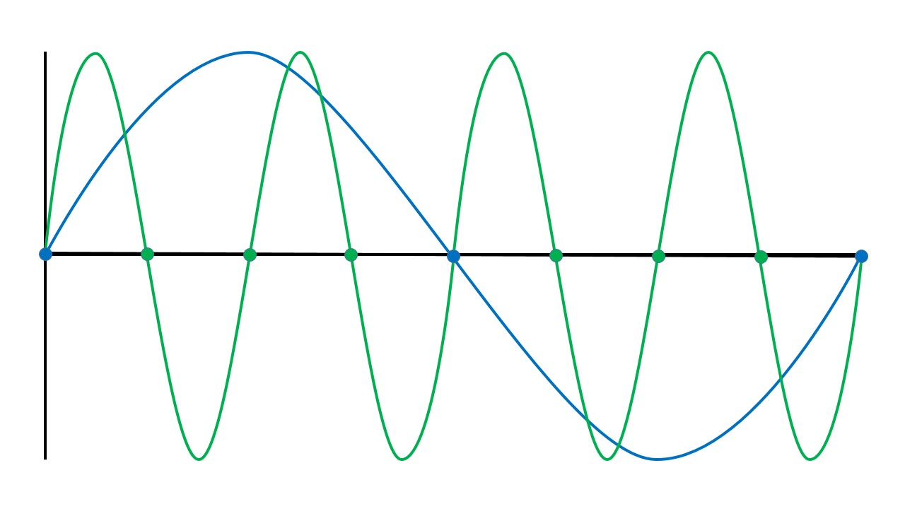 As the compressions and rarefactions push back and forth, a standing wave is created. Since the tube is a fixed length, waves can be produced with wavelengths that relate to the length of the tube. Since one end of the tube is open, the instrument's fundamental, or the lowest-frequency wave the instrument can produce, is twice the length of the tube. The frequencies of other pitches will be related to the fundamental one through a harmonic series.