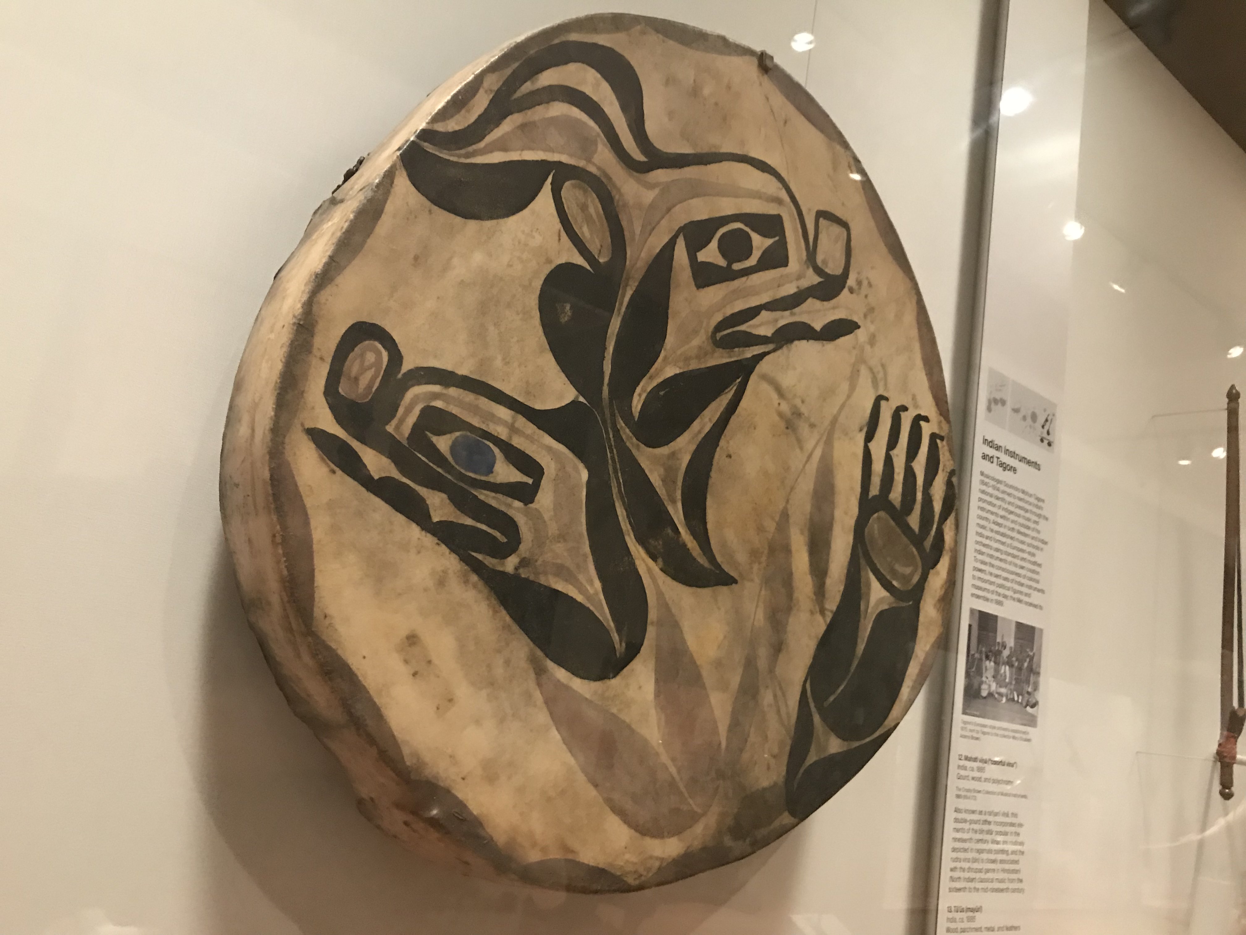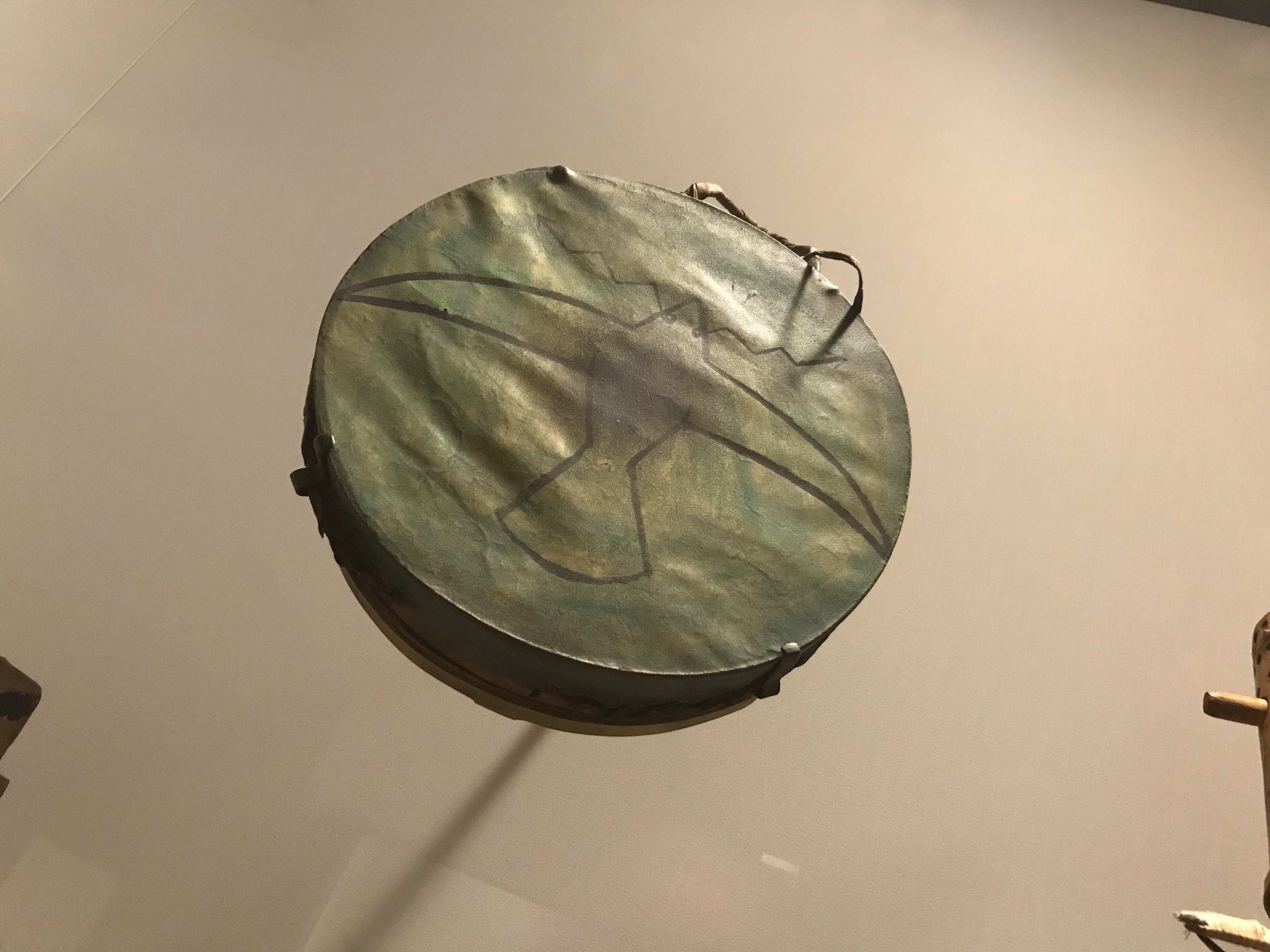 The wakan-chan-cha-gha is a Sioux frame drum from the Great Plains. Drums were often decorated with figures of animals and other culturally significant symbols.
