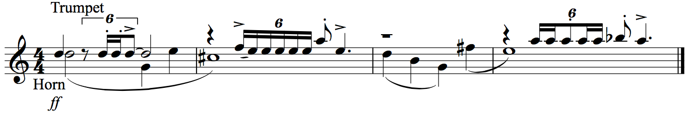 While Yoda battles the villainous Count Dooku, the theme is presented forte in the horns, interspersed with fanfare statements in the trumpet.